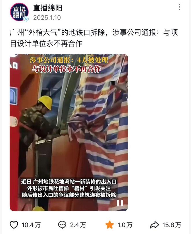 地面上的设计被连夜拆除,涉事单位也对4位设计师进行了通报批评、降级处罚。