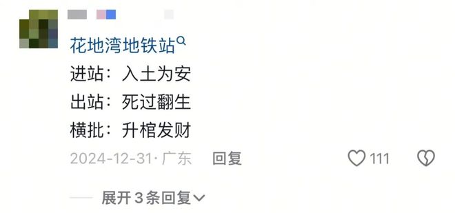 “广州花地湾地铁站,设计有陵感,外棺大气,内逝豪华,寿后有保葬,尽显亡者风范。”